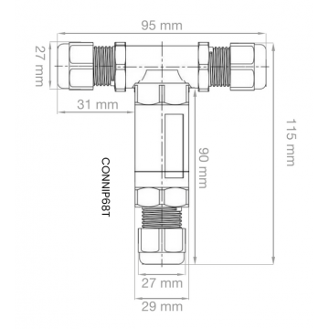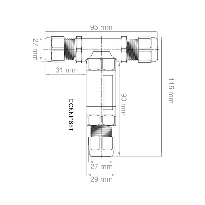 Giunto di connessione a T 3 poli per cavi 1.0 - 2.5mm2 IP68 Lampo CONNIP68T