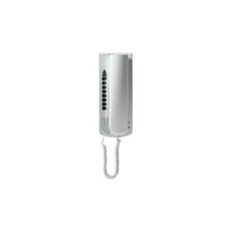 Citofono supplementare da parete da collegare negli impianti Videokit Due Fili, con 1 pulsante per apertura serratura, 1 per autoinserimento/autoaccensione e 3 per chiamate intercomunicanti, bianco