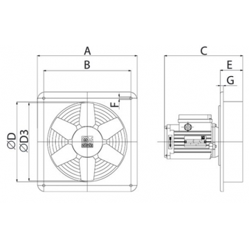 Girante a 6 pale a profilo alare calettate su un mozzo in alluminio pressofuso, dinamicamente bilanciata (UNI ISO 1940,– Classe di equilibratura 6.3), ottimizzata per massimizzare le prestazioni ed i livelli sonori, stampata in polipropilene caricato per conseguire elevati livelli di stabilità dimensionale e resistenza agli agenti atmosferici