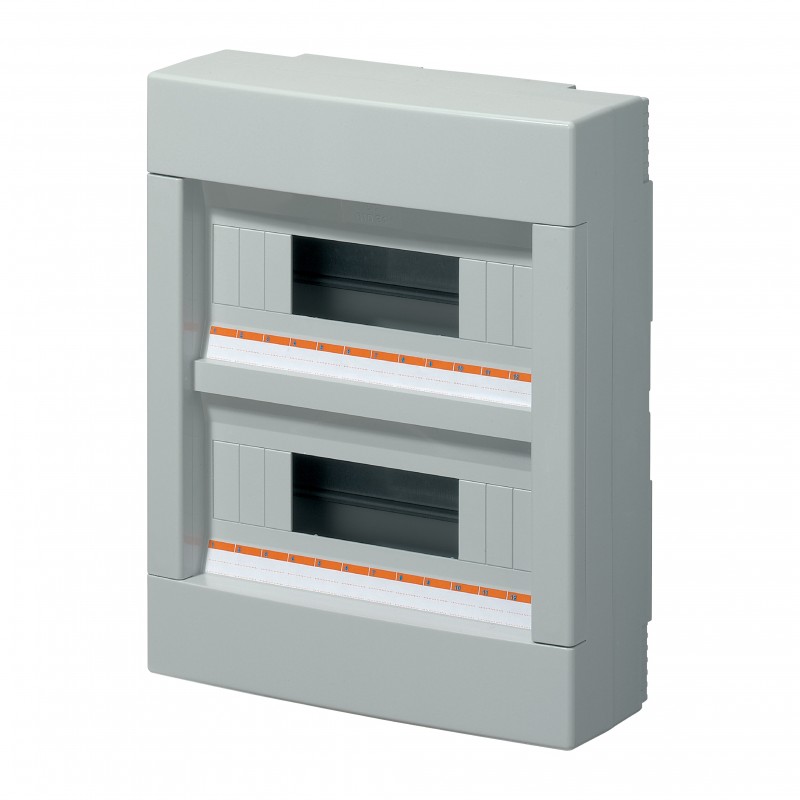 Centralino da parete. Prodotto in tecnopolimero antiurto a base di ABS resistente ai raggi UV e halogen free. Grado di resistenza all'urto IK08. Resistenza al calore anomalo fino a 650° C (GWT). Fondo e coperchio in tecnopolimero halogen free a base di ABS. Coperchio reversibile. Etichetta autoadesiva di identificazione circuiti in dotazione. Tappo di copertura per moduli non utilizzati in dotazione. Tappi copriviti di fissaggio forniti per mantenere il grado di protezione IP e il doppio isolamento. Guida DIN in acciaio zincato montata. Prodotto in conformità alla norma EN 60670-1:2005, EN 60670-22:2013. Temperature durante l’installazione: minima –5°C, massima +60°C. Temperature d'esercizio:minima -25°C, massima +70°C. Grado di protezione IP40. Il grado di protezione IP40 (impossibilità di introdurre un filo di prova Ø 1 mm) si ottiene installando accessori con grado di protezione IP40, apparecchi con superficie frontale liscia o con copriforo.