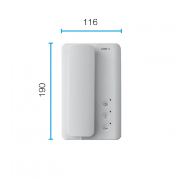 Cornetta con riaggancio magnetico LED di segnalazione a scomparsa AUX2 per funzioni ausiliarie e chiamata al portiere Funzione apriporta automatico Installazione a parete Compatibile per l'installazione a parete su scatola 503 (orizzontale o verticale) e su scatola tonda Ø 60 mm
