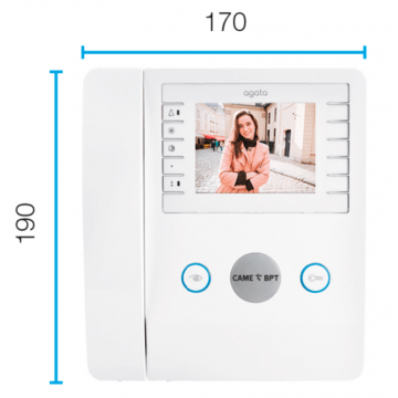 Videocitofono a cornetta, display LCD da 3,5”, 2 tasti AUX programmabili e colore bianco.Monitor a parete con display LCD a colori da 3,5˝. Sul lato sinistro si trovano i tasti di regolazione/esclusione suoneria, regolazione saturazione colore e luminosità e i 2 tasti ausiliari. Ben visibili e retroilluminati sono i tasti principali che permettono l'apertura porta e l'autoinserimento video dei posti esterni. È dotato di funzione Master/Slave e della funzione palleggio video fra derivati in chiamata contemporanea. È inclusa la staffa per l'installazione a parete su scatola 503 (orizzontale o verticale), scatola 506E e su scatola tonda Ø 60 mm. Compatibile con sistema X1 e XIP.