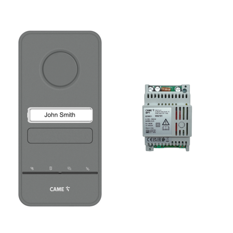Kit base impianto citofonico espandibile fino a 4 derivati interni composto da posto esterno LHS A/01 e alimentatore VAS/101.