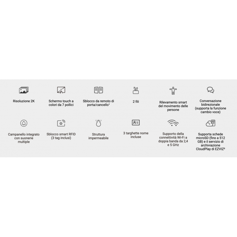 È ora di aggiornare il tuo vecchio citofono per collegarlo a Internet e renderlo accessibile da remoto e controllabile tramite app. Il primo videocitofono HP7 di EZVIZ massimizza la comodità per i proprietari di casa di visualizzare, parlare e concedere l'accesso ai visitatori anche se non sono a casa. Migliora anche la sicurezza domestica, in quanto la videocamera e il telefono esterni 2 in 1 possono registrare video in formato 2K, rilevare le persone e inviare notifiche sull'app mobile in tempo reale.