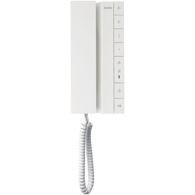 Citofono cornetta Voxie per sistema Due Fili Plus con 6 pulsanti per le funzioni apertura serratura e servizio ausiliario (luce scale), 4 pulsanti programmabili per funzioni e servizi ausiliari, installazione a parete, bianco