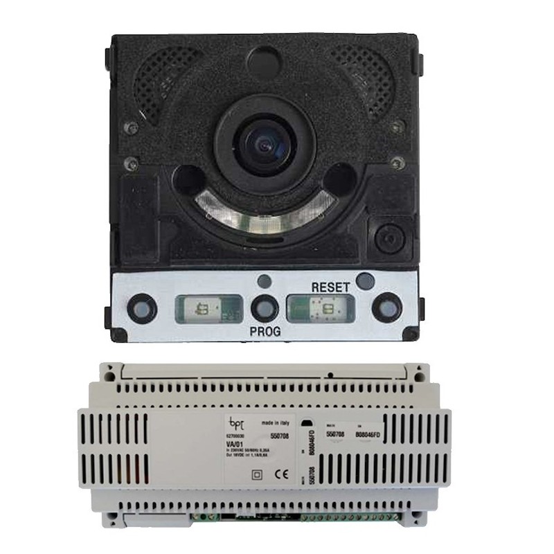 Kit base impianto videocitofonico espandibile fino a 4 derivati interni composto da posto esterno LHS V/01 e alimentatore VAS/101.