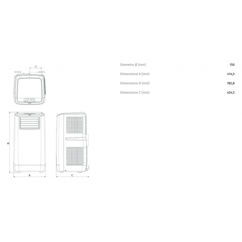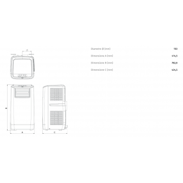 • Involucro realizzato in resina termoplastica ABS. • 4 modalità di funzionamento: automatico, raffrescamento, deumidificazione, ventilazione. • Apparecchio in classe A dotato di doppia modalità di funzionamento: aria-aria e acqua-aria (funzione “SUPER COOL”), quest’ultima garantisce superiori capacità refrigeranti ed un significativo miglioramento dell’efficienza energetica dei prodotti. • Non richiede interventi di installazione: è sufficiente garantire, attraverso la tubazione di scarico la fuoriuscita dell’aria calda dall’ambiente di climatizzazione. • Dotato di comandi elettronici con display LCD e di un moderno telecomando ad infrarossi per il controllo a distanza. • Sistema di scarico continuo che trasforma automaticamente la condensa che si forma all’interno dell’apparecchio in vapore che viene poi espulso all’esterno. • Timer programmabile: consente di programmare, nell’arco delle 24 ore e ad intervalli di 1 ora, l’accensione e lo spegnimento dell’apparecchio. • Funzione “SLEEP”: ottimizza i consumi notturni, innalzando di 1°C la temperatura impostata, per ciascuna delle due ore successive. • Filtri antipolvere lavabili. • Filtro ai carboni attivi che elimina i cattivi odori. • Contiene gas fluorurato (R290) ad effetto serra, caratterizzato da GWP - Global Warning Potential - prossimo a zero, limita le emissioni di anidride carbonica in atmosfera e così favorisce il contenimento della temperatura globale del pianeta. • Prodotto ermeticamente sigillato. • Accessori in dotazione: • Adattatore tondo • Cover per adattatore tondo • Tubazione di scarico dell’aria calda • Pannello in plastica • Pannello in plastica con foro tondo • Tubo per lo scarico continuo della condensa • Filtro ai carboni attivi • Telecomando ad infrarossi.