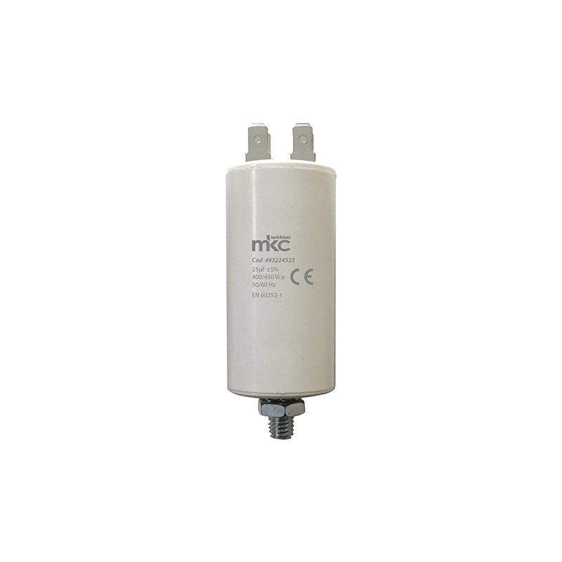 Condensatore Melchioni 25UF 400/450V con doppio faston e codolo