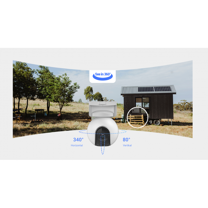 EB8 4G è completamente priva di cavi e dispone di batterie ricaricabili integrate³. Per approfondire ulteriormente il tema sull'energia ecologica sostenibile, questa telecamera può essere collegata a un pannello solare EZVIZ⁴ per sfruttare l'energia del sole.