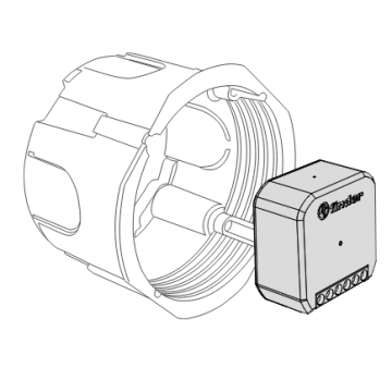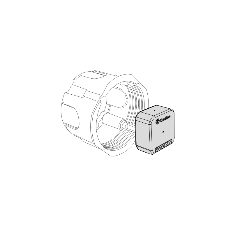 1 uscita 1 ingresso per pulsanti cablati. Può essere comandato da: pulsanti filari, pulsanti wireless, smartphone Gestione fino a 8 scenari Programmazione con smartphone Android o iOS Connessione Bluetooth 4.2 Low Energy protetta con crittografia a 128 bit Montaggio da incasso (es. scatola Ø 60 mm
