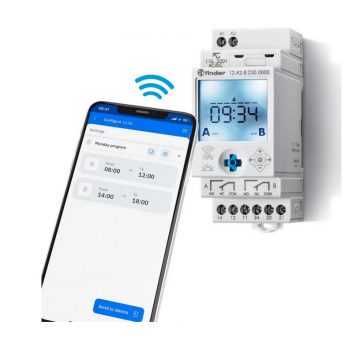 Scaricando l’app gratuita si possono configurare gli interruttori orari tipo: 12.51, 12.81, 12.61, 12.62, 12.A1, 12.A2.