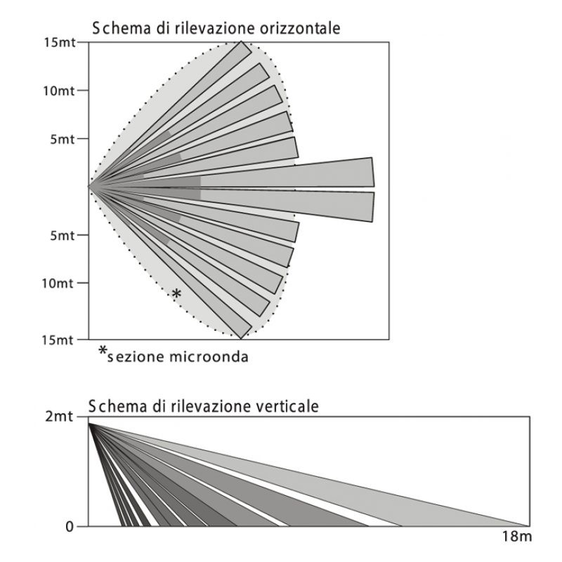 Tecnologie di rilevamento PIR / Microonda selezionabili (AND/OR)