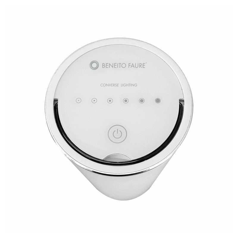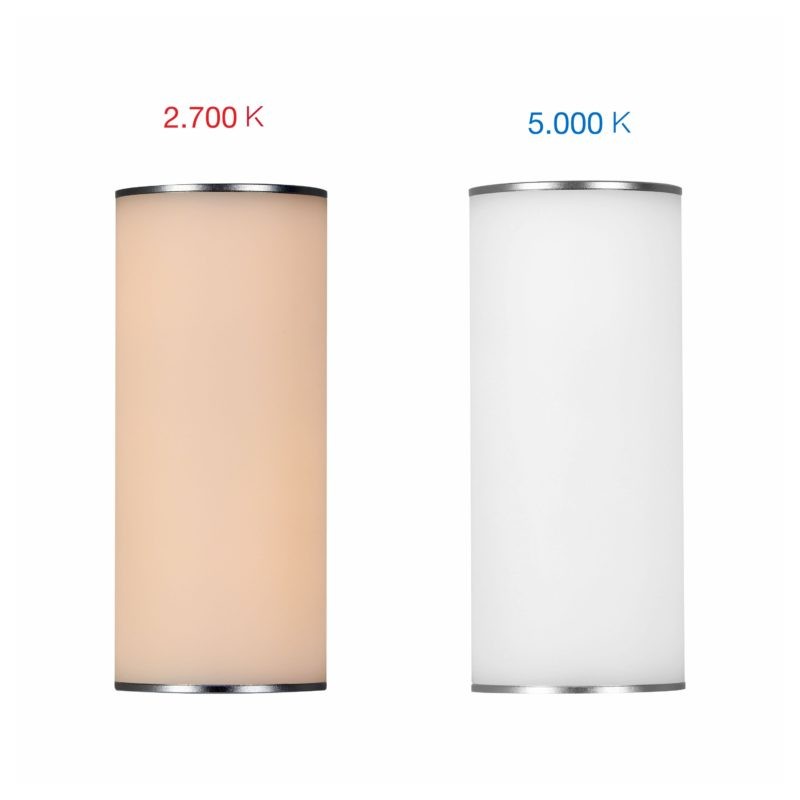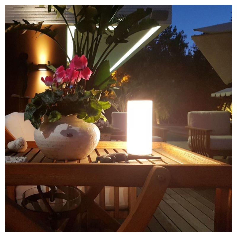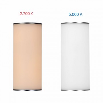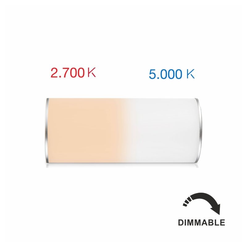 Lampada portatile con sensore per la regolazione e la temperatura di colore della luce. Ha una batteria litio con fino a 180 ore di autonomia e una ricarica micro USB del dispositivo in meno di 4 ore.