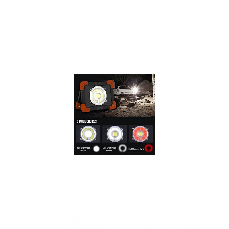 Modalità super luminosa 1200 lumen reali; la lampada LED da lavoro sauron ha 3 modalità d'illuminazione per soddisfare ogni vostra esigenza: 1) modalità luce intensa da 1200 lumen (reali) 2) modalità luce normale per risparmiare la batteria 3) luce rossa lampeggiante per le emergenze stradali e funzione segnale di so.
