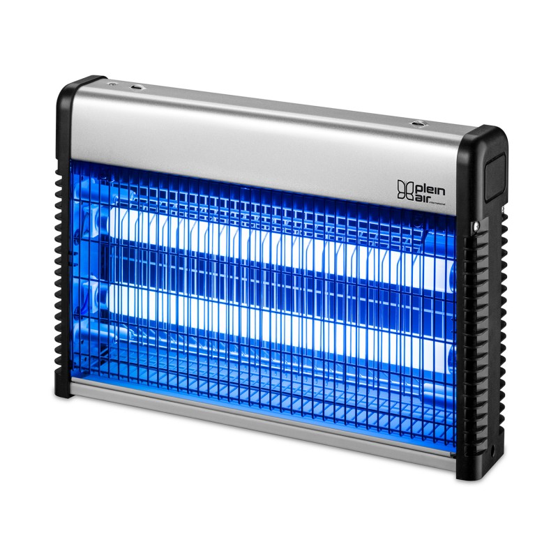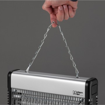 Zanzariera a scarica elettrica da 3000 V dotato di 2 lampade attiniche da 10W. Colore: grigio metallizzato. Ideale per eliminare zanzare e insetti in un raggio d’azione di 80 m2. Dotato di cassetto raccogli insetti estraibile e catena di sospensione per l’utilizzo da appeso.