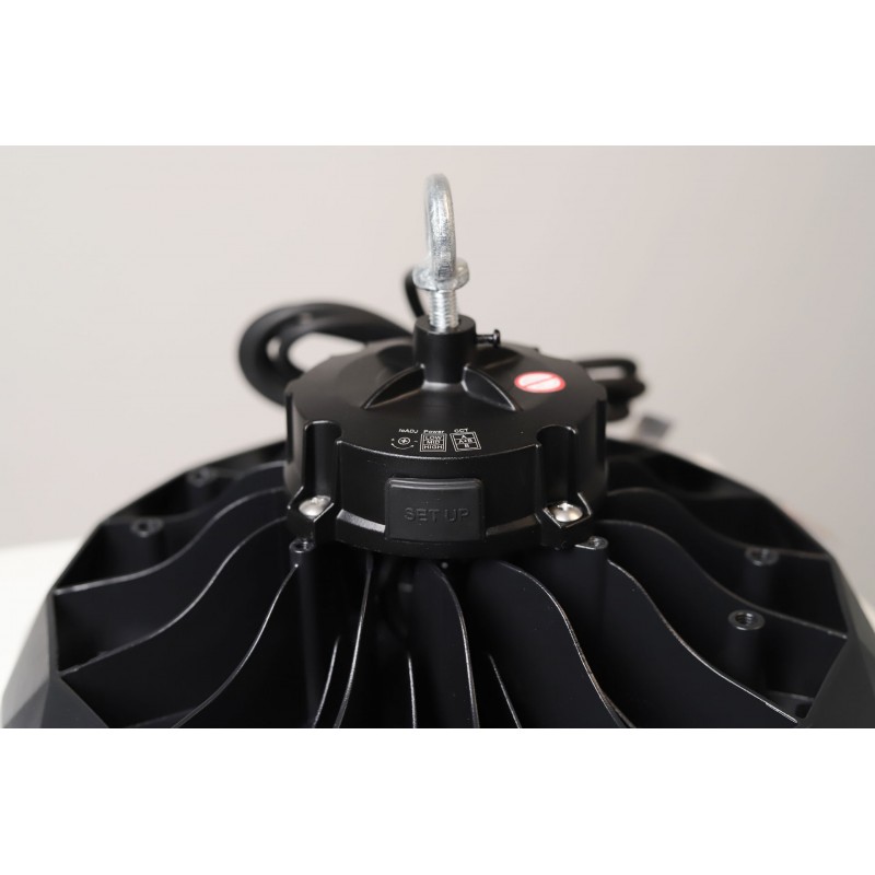 Versatile e polivalente, ogni modello ha tre diverse potenze di 60W-80W-100W, 90W-120W-150W, 120W-160W-200W e 140W-190W-240W che possono essere combinate con tre temperature di colore (3.000K, 4.000K e 5.000K) e tre gradi di apertura (60º, 90º e 110º) che possono essere adattati con precisione alle esigenze richieste da ogni spazio. Con la certificazione CRI>80 che riproduce in modo ottimale i colori, questa campana a LED è dotato della tecnologia Switch che consente di regolare la luce in base a ogni esigenza e momento della giornata.