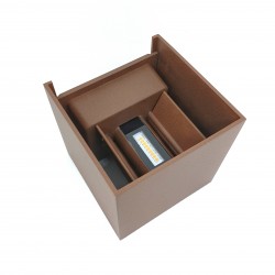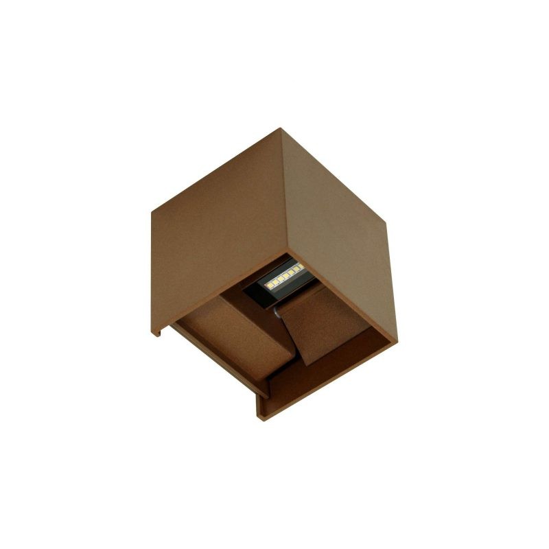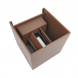 Applique decorativa a LED per esterni, ideale per illuminare le calde notti estive in terrazze, giardini e aree relax. Disponibile nelle finiture corten, bianco e nero opaco. Attraverso le sue alette interne consente di regolare l'apertura del fascio luminoso a piacimento sia sopra che sotto.