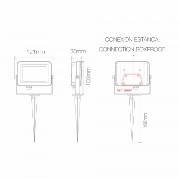 Proiettore a LED per uso esterno (IP65), con potenza 10W.
