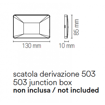 Corpo: Diffusore in Policarbonato tripla stabilizzazione ai raggi UV, ad alto spessore con finitura PoliGLASS, ottenuto da stampaggio ad iniezione proprio.