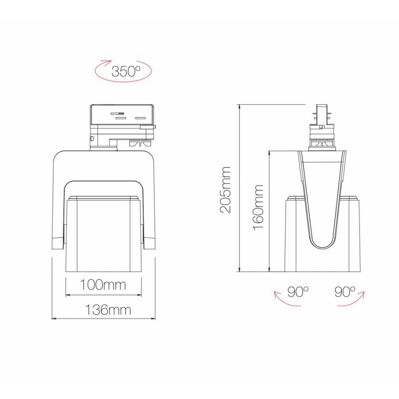 Proiettore a Led Bianco Beneito da binario KOM 30W SWITCH Tricolor 15º/25º/40º
