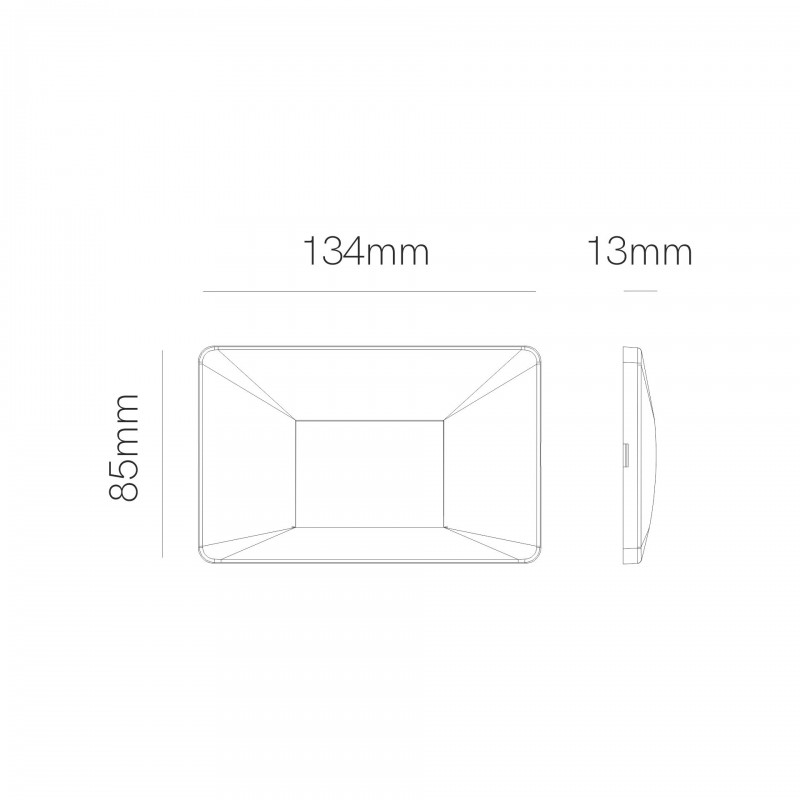 Segnapasso a LED progettato per uso esterno con potenza 3W e protezione IP65. Disponibile nelle finiture corten, bianco e nero opaco, in formato rettangolare, nella temperatura di colore 3000K. È realizzato in policarbonato resistente ai raggi UV. Si distingue per il suo design minimalista e la sua finitura di alta qualità. Il prodotto risulta mimetizzato e passa inosservato se posizionato su una parete dello stesso colore, mostrando solo il suo raggio di luce.