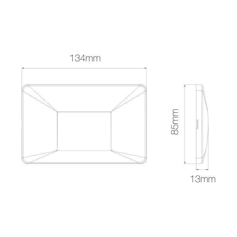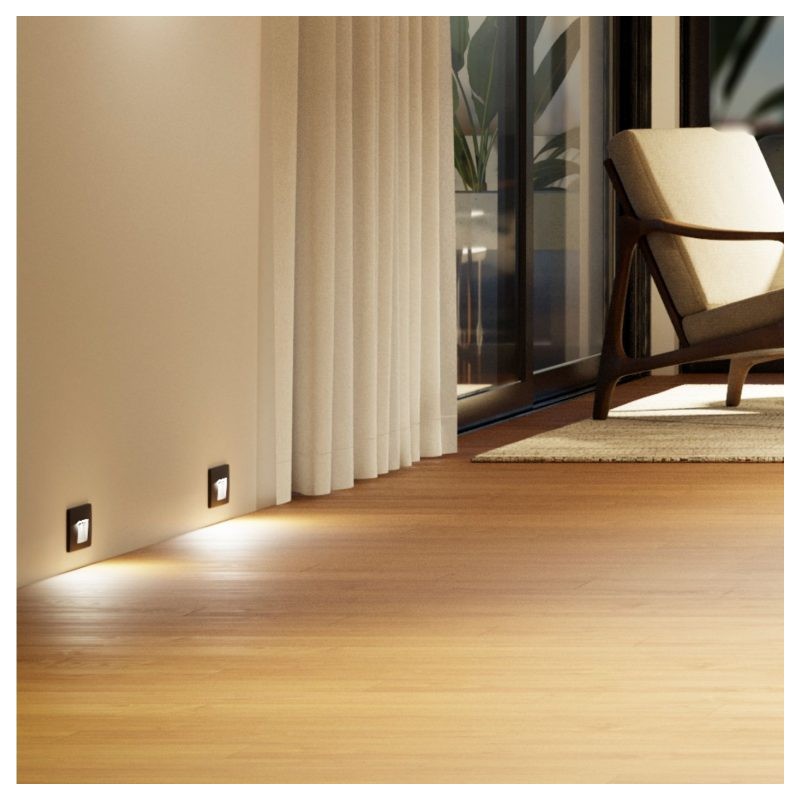 Segnapasso a LED progettato per uso esterno con potenza 3W e protezione IP65. Disponibile nelle finiture corten, bianco e nero opaco, in formato rettangolare, nella temperatura di colore 3000K. È realizzato in policarbonato resistente ai raggi UV. Si distingue per il suo design minimalista e la sua finitura di alta qualità. Il prodotto risulta mimetizzato e passa inosservato se posizionato su una parete dello stesso colore, mostrando solo il suo raggio di luce.