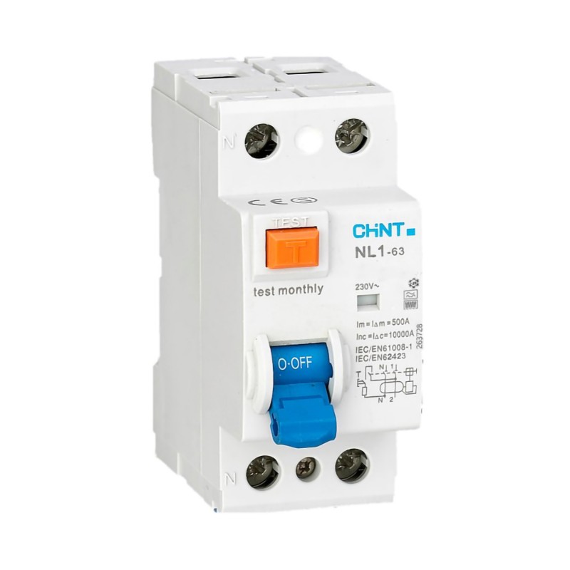 Interruttori differenziali puri serie NL1-63, senza sganciatori di sovracorrente incorporati. Controllo dei circuiti elettrici per la protezione degli utilizzatori dai contatti diretti ed indiretti. Protezione degli impianti elettrici contro il rischio dell’incendio dovuto ai guasti dell’isolamento. Per applicazioni in ambito residenziale e terziario. Particolarmente idonei alla protezione di elettrodomestici di nuova generazione dotati di elettronica di potenza e convertitori statici di tipo monofase. Disponibili in versione bipolare con potere di interruzione di 10 kA e caratteristica di funzionamento differenziale di tipo F su 2 moduli DIN, con correnti nominali di 25, 40, 63 A e soglie di intervento differenziale di 30 mA.