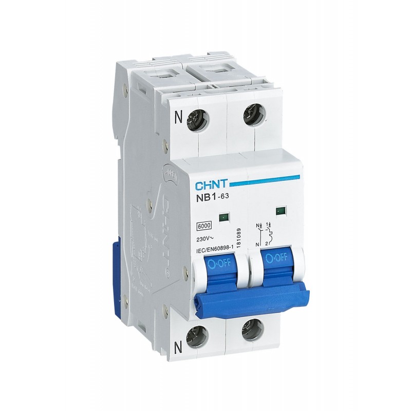 Interruttori magnetotermici serie NB1-63 per la protezione dalle sovracorrenti. Garantiscono una protezione adeguata dai sovraccarichi e dai cortocircuiti e risultano particolarmente idonei all'impiego in ambito civile, terziario e industriale. Disponibili in versione da 1 , 2, 3 e 4 poli, con potere di interruzione nominale (Icn) di 6kA e corrente nominale da 1 a 63 A in curva B, C e D. Tensione nominale 230 V e 400 V. Accessoriabili con contatti ausiliari, contatti di allarme, bobina di sgancio, bobina di minima tensione, moduli differenziali (ad esclusione dell'unipolare).