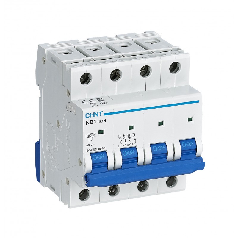Interruttori magnetotermici serie NB1-63H per la protezione dalle sovracorrenti. Garantiscono una protezione adeguata dai sovraccarichi e dai cortocircuiti e risultano particolarmente idonei all'impiego in ambito civile, terziario e industriale. Disponibili in versione da 1 , 2, 3 e 4 poli, con potere di interruzione nominale (Icn) di 10kA e corrente nominale da 1 a 63 A in curva B, C e D. Tensione nominale 230 V e 400 V. Accessoriabili con contatti ausiliari, contatti di allarme, bobina di sgancio, bobina di minima tensione, moduli differenziali (ad esclusione dell'unipolare).