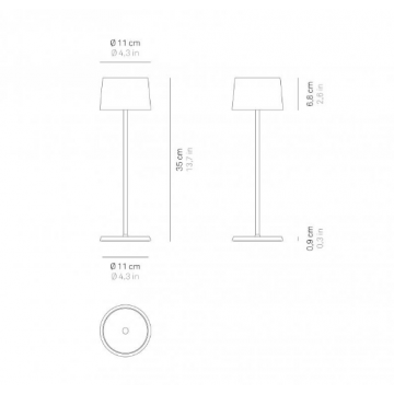 Olivia pro è una lampada a batteria portatile e ricaricabile da tavolo. È dotata di: base di ricarica a contatto, touch dimmer e della funzione di memoria dell’impostazione di dimmerazione che memorizza gli step di dimmerazione. Di conseguenza, ad ogni accensione, l'intensità luminosa corrisponderà a quella precedentemente impostata. La lampada è dotata inoltre della funzione di selezione della temperatura di colore della luce tra 2700 e 3000° Kelvin (bianco dinamico).
