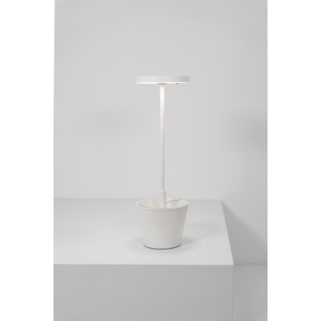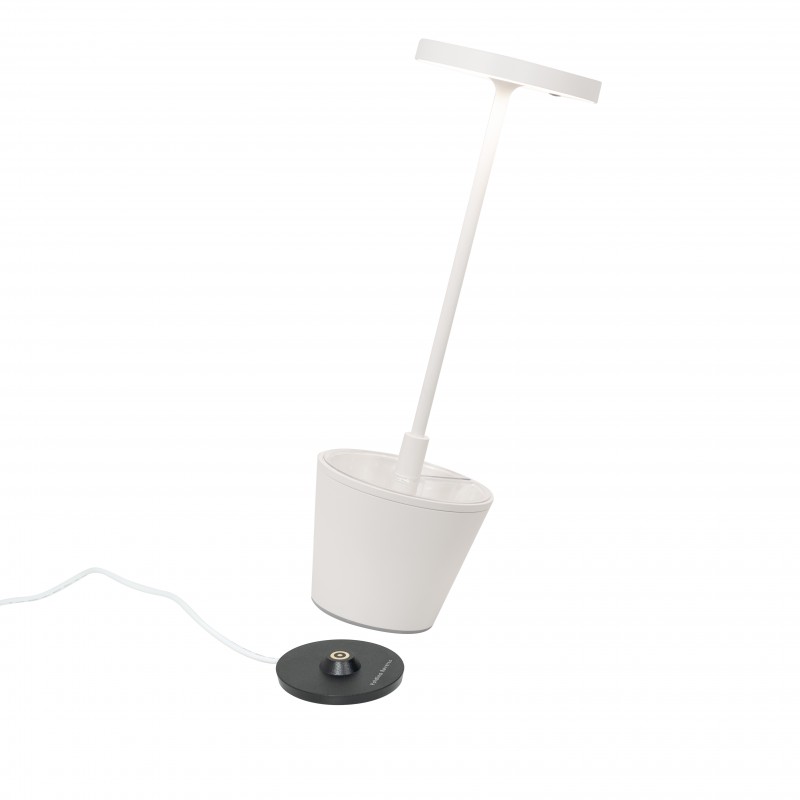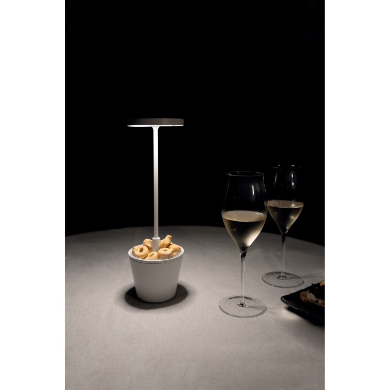 Poldina Reverso è una lampada da tavolo a batteria, portatile e ricaricabile, con contenitore multiuso. Nella parte inferiore della testa è presente un controllo “touch”, che permette l’accensione, la regolazione dell’intensità luminosa e la selezione della temperatura di colore della luce tra 2200 K, 2700 K e 3000 K. Grazie a un alto indice di protezione, la lampada è utilizzabile anche all’esterno.