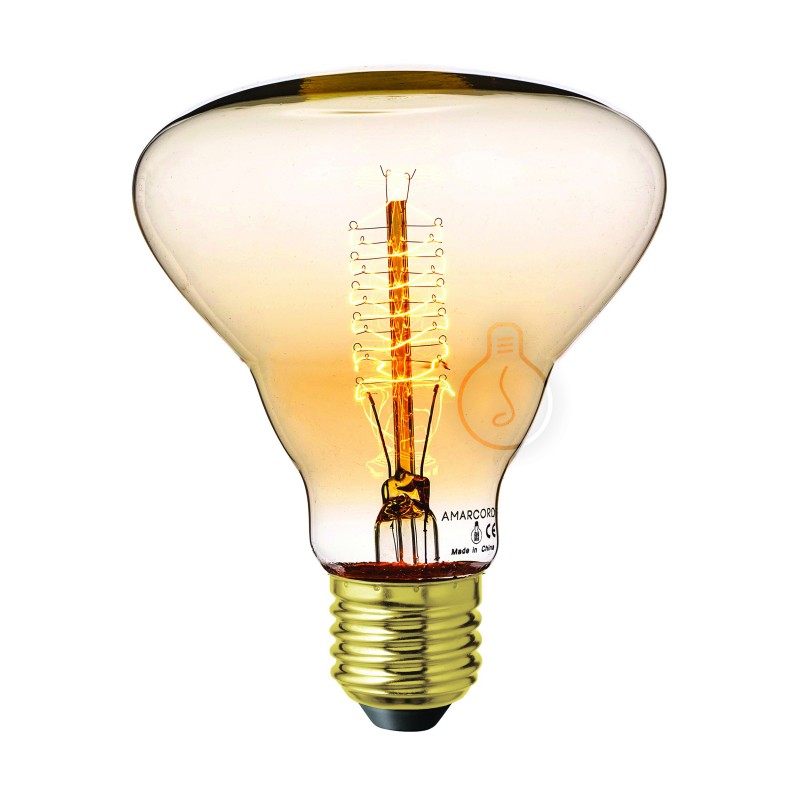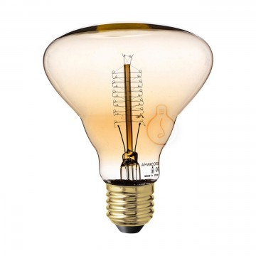 Lampadina decorativa a incandescenza, connessione E27, forma BR95, vetro vintage ambrato, luce calda e filamento in carbonio a vite dimmerabile