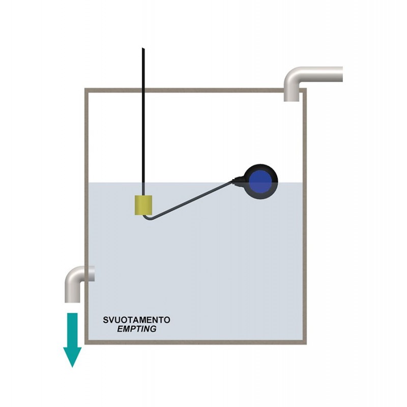 Gli interruttori a galleggiante permettono l’automazione di apparecchiature elettriche (normalmente pompe, ma anche elettrovalvole, allarmi, ecc..) al raggiungimento di un livello prefissato. All’interno del dispositivo è presente un microinterruttore che, a seconda del livello di liquido, apre o chiude il contatto che alimenta l’elettropompa accessoriato con contrappeso.