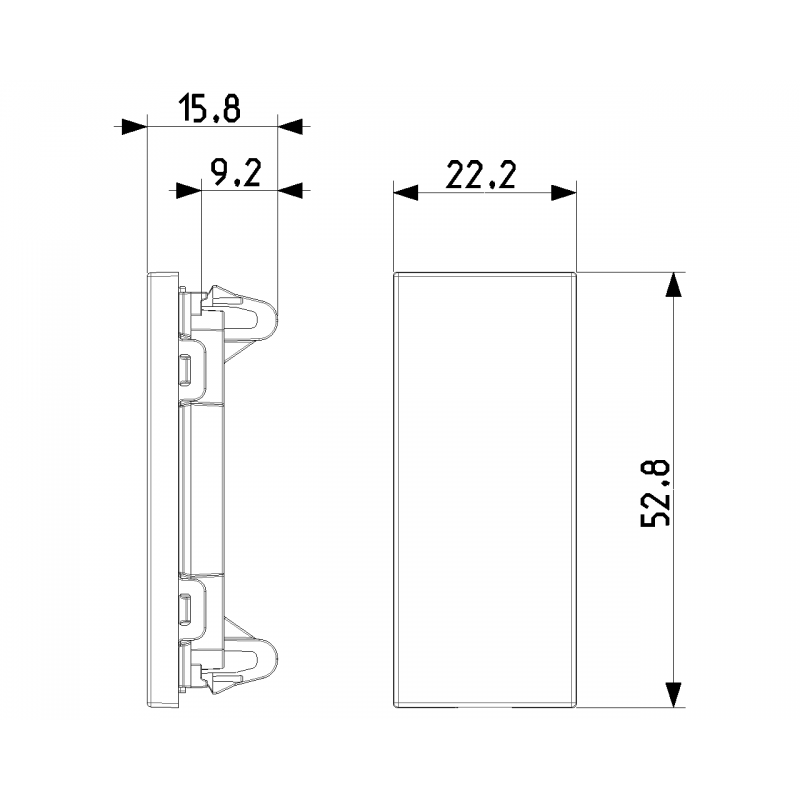 Pulsante 1P NO 10 A 250 V~, a targhetta luminosa, per unità segnalazione LED 00935… e 00936… - 2 moduli. Fornito senza unità di segnalazione.