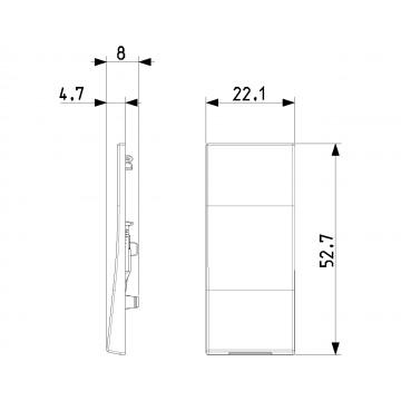 Tasto intercambiabile 1 modulo allineato, con fascio luce verticale, bianco