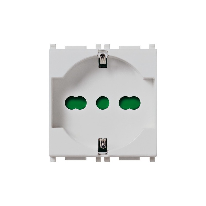 Presa elettrica schuko universale Vimar Plana Silver. La presa elettrica schuko detta anche presa tedesca permette di inserire al suo interno qualsiasi spina(piccola,grande e schuko).