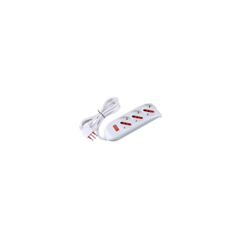Multipresa bianca 3 Schuko - Bivalenti con spina a pipa 10A e protezione da sovracorente Rosi