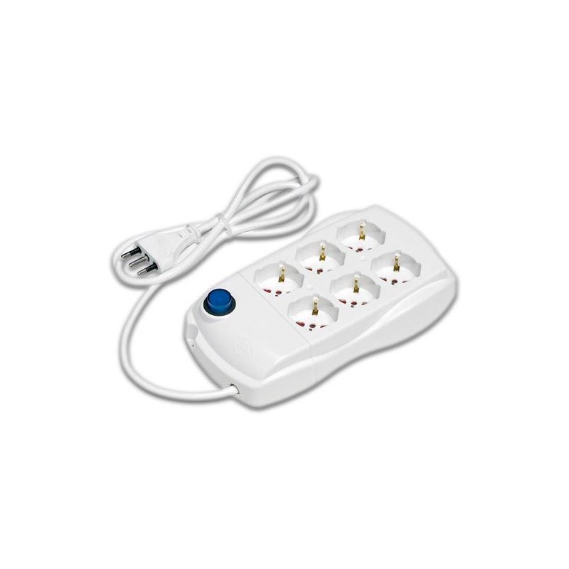 Multipresa bianca quadrata 6 Schuko - Bivalenti con protezione salvafulmine e interruttore Rosi