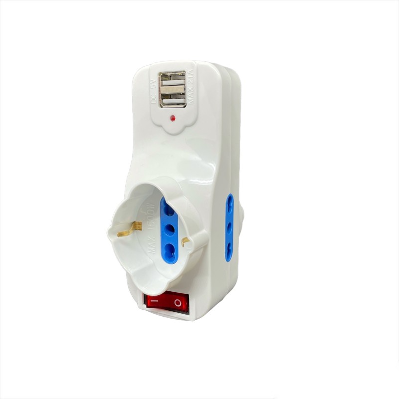 Adattatore con spina girevole 16A interruttore 1 Schuko 2 Bivalenti e 2 USB FAEG