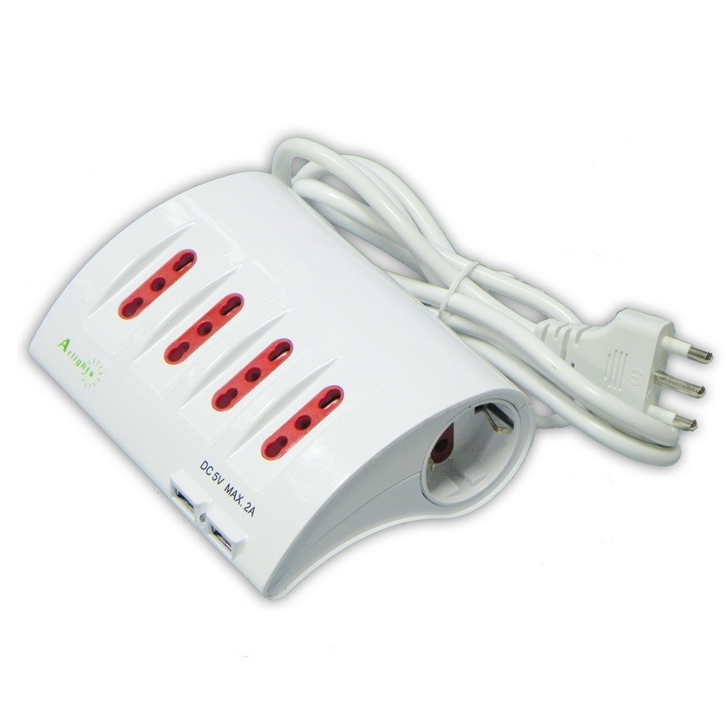 Multipresa da tavolo Arteleta con 2 prese schuko 4 bivalenti 10/16A e 2 USB