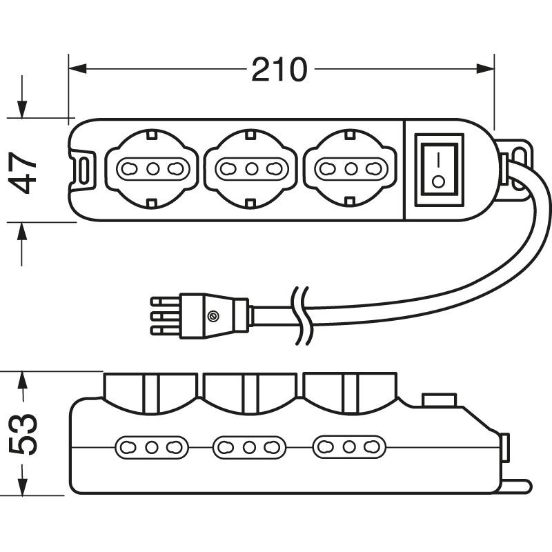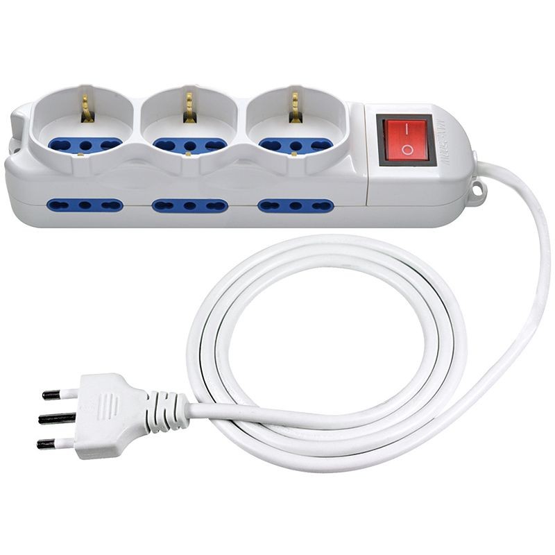 Multipresa bianca 3 Schuko - Bivalenti con spina a pipa e interruttore Rosi