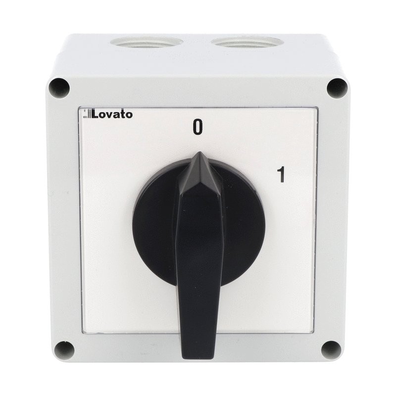 Commutatore Lovato a camme serie 7GN interruttore 3 poli da 40A in cassetta plastica 110X110mm con maniglia nera