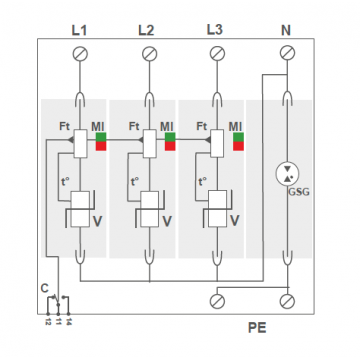 Scaricatore di sovratensione, da installare in quadri secondari di distribuzione in bassa tensione, per prevenire gli effetti derivanti da fenomeni atmosferici.