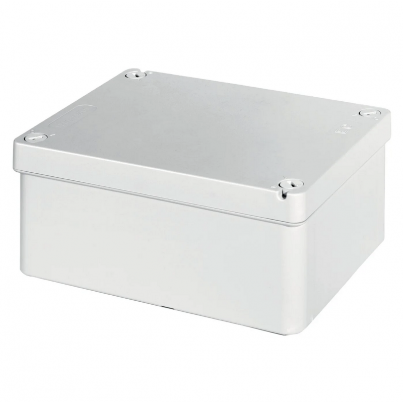 Cassetta di derivazione pareti lisce. Prodotta in tecnopolimero antiurto a base di ABS resistente ai raggi UV e halogen free. Grado di resistenza all'urto IK08. Resistenza al calore anomalo fino a 650° C (GWT). Fissaggio coperchio con viti in poliammide a 1/4 di giro piombabili su due lati. Sistema di ancoraggio del coperchio anti caduta. Guarnizione interna in gomma morbida ad elevata aderenza. Possibilità di doppio isolamento con tappi opzionali. Fissaggi interni per guide DIN, morsettiere o piastra di fondo. Prodotta in conformità alla norma EN 60670-1:2005, EN 60670-22:2006. Temperature durante l’installazione: minima –5°C, massima +60°C. Temperature d'esercizio: minima -25°C, massima +70°C. Grado di protezione IP67.