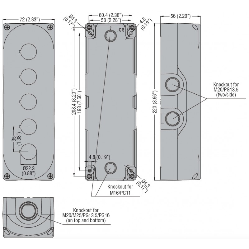 Contenitore Lovato per 5 pulsanti con coperchio Grigio