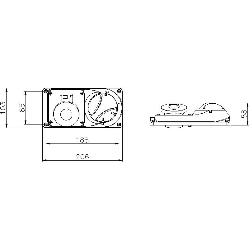Ingombro: 1 flangia per Presa interbloccata verticale