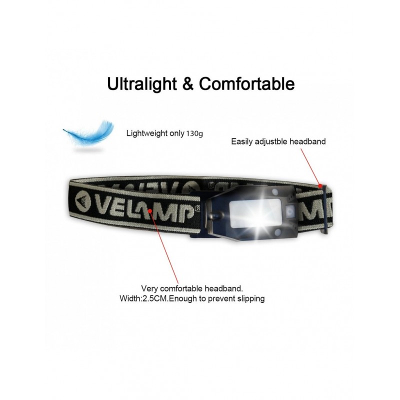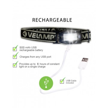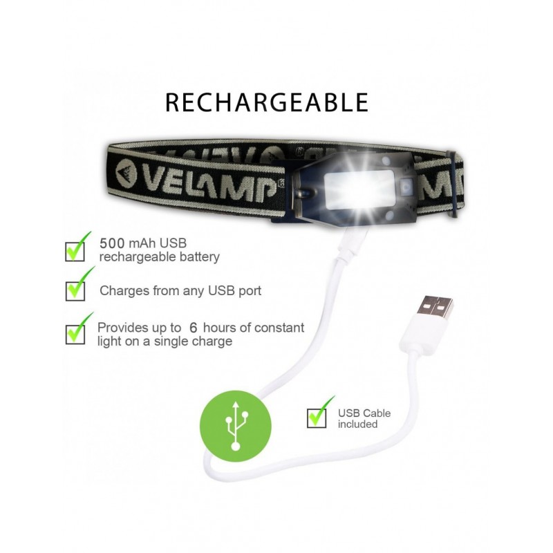 Torcia frontale led con interruttore contactless ricaricabile 150lm Velamp