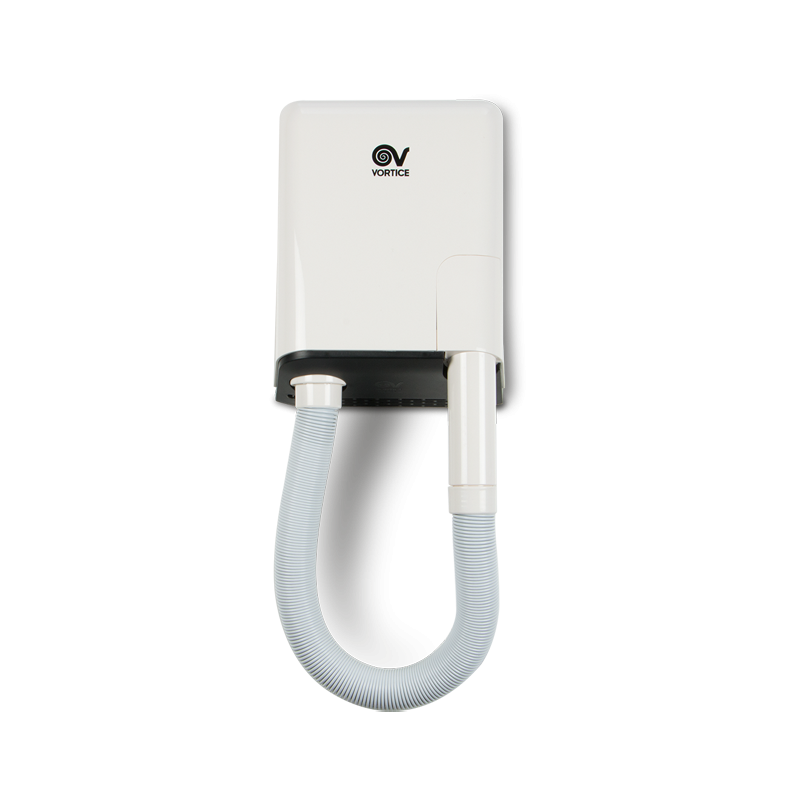 Motore a collettore di elevata qualità, con protettore termico incorporato, a due velocità, per il miglior compromesso tra velocità di asciugatura e comfort d’uso, abbinata ad una girante assiale studiata per produrre un efficace flusso d’aria