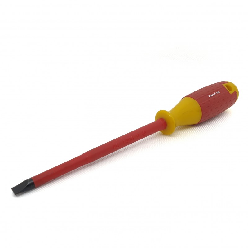 Giravite isolato per elettricista con lama in acciaio al cromo molibdeno vanadio ed impugnatura anatomica bicomponente per viti a taglio
