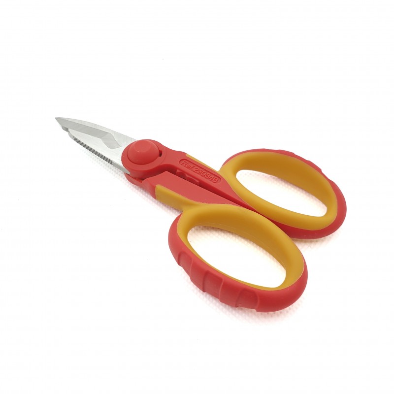 Forbici per elettricista in acciaio al cromo vanadio con manico ergonomico composto da nylon e il 30% da bra di vetro e lame microdentatecon durezza HRC 58 - 60